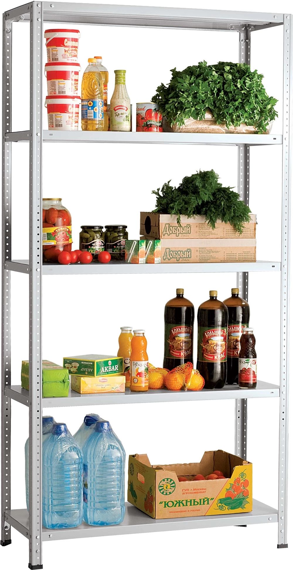 Полки изготовлены с ребром жёсткости и подштамповкой, которая придаёт им дополнительную жёсткость и повышает прочность. Высота бокового ребра составляет 33 мм. Максимум распределённой нагрузки на одну полку до 100 кг; на весь стеллаж до 500 кг.