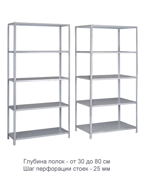 В стойках предусмотрены перфорированные отверстия через каждые 25 мм, позволяющие менять расположение полок по высоте наиболее удобным и рациональным образом.